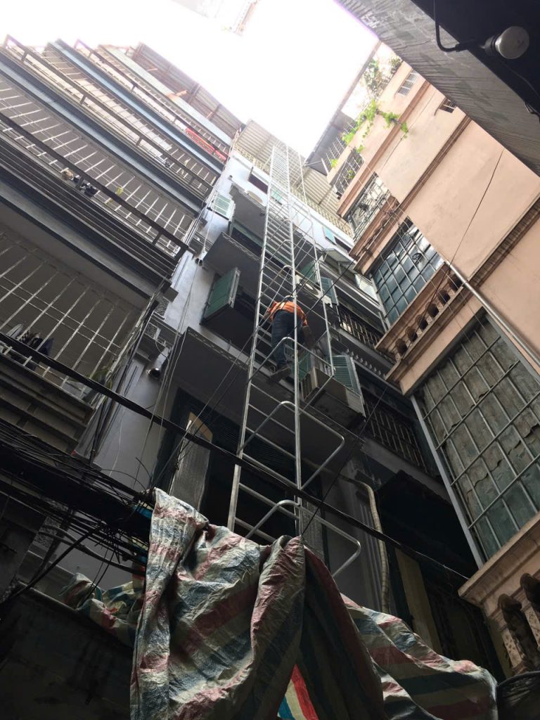 Thang thoát hiểm đứng ngoài trời có khung bảo vệ là giải pháp tối ưu cho những công trình có không gian nhỏ hoặc yêu cầu lối thoát hiểm bổ sung. Sản phẩm đảm bảo an toàn theo tiêu chuẩn PCCC, giá hợp lý và độ bền cao.