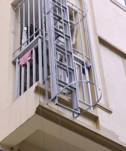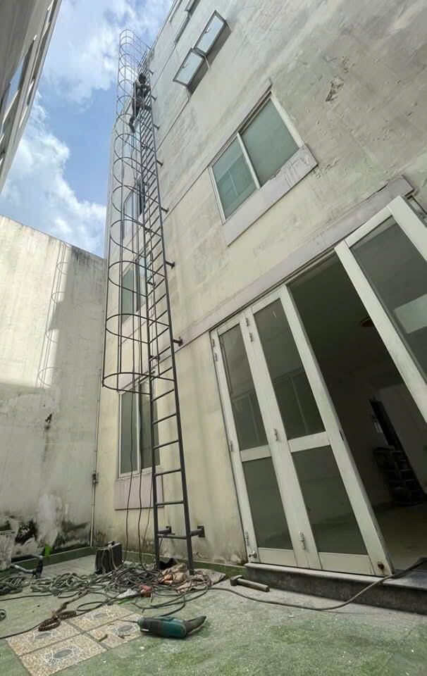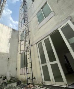 Thang thoát hiểm đứng ngoài trời có khung bảo vệ là dạng thang kỹ thuật chuyên dùng trong các công trình nhà phố nhiều tầng, nhà dân, khách sạn, chung cư mini và tòa nhà cao tầng. Với thiết kế dạng thang đứng kèm khung vòng bảo vệ bán nguyệt, sản phẩm giúp tạo lối thoát hiểm nhanh chóng, đặc biệt phù hợp với những vị trí hẹp hoặc không thể lắp đặt cầu thang thoát hiểm bản rộng.