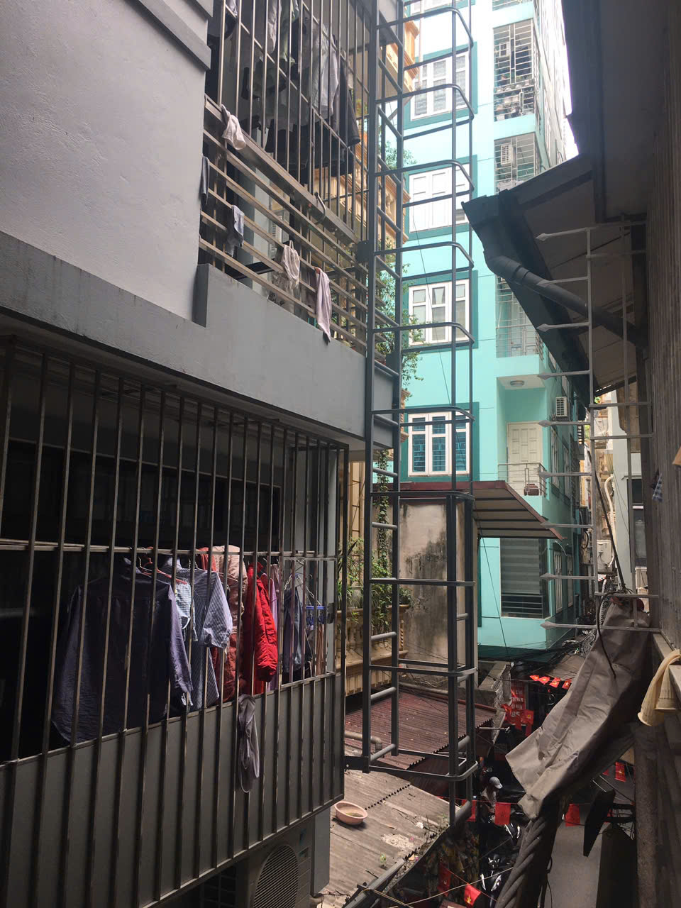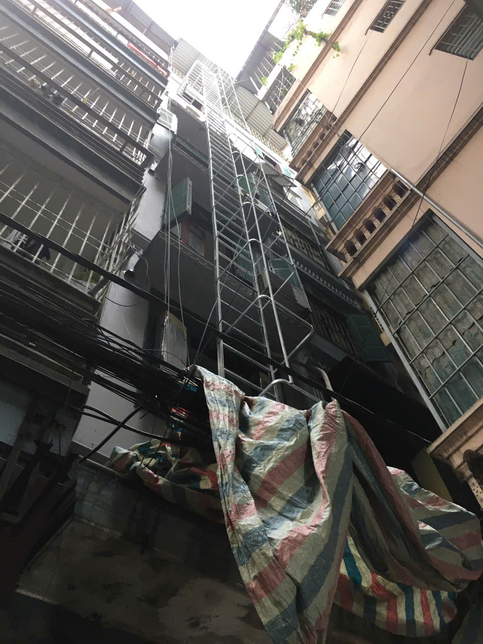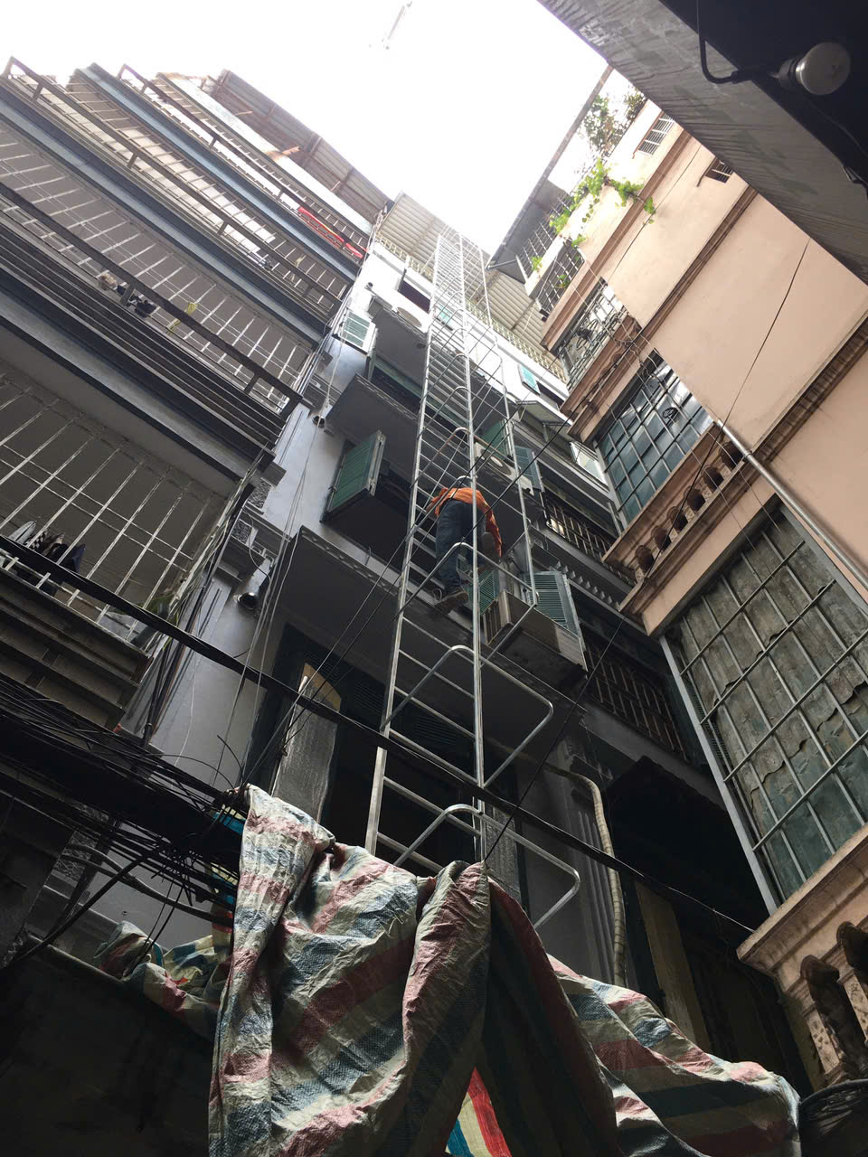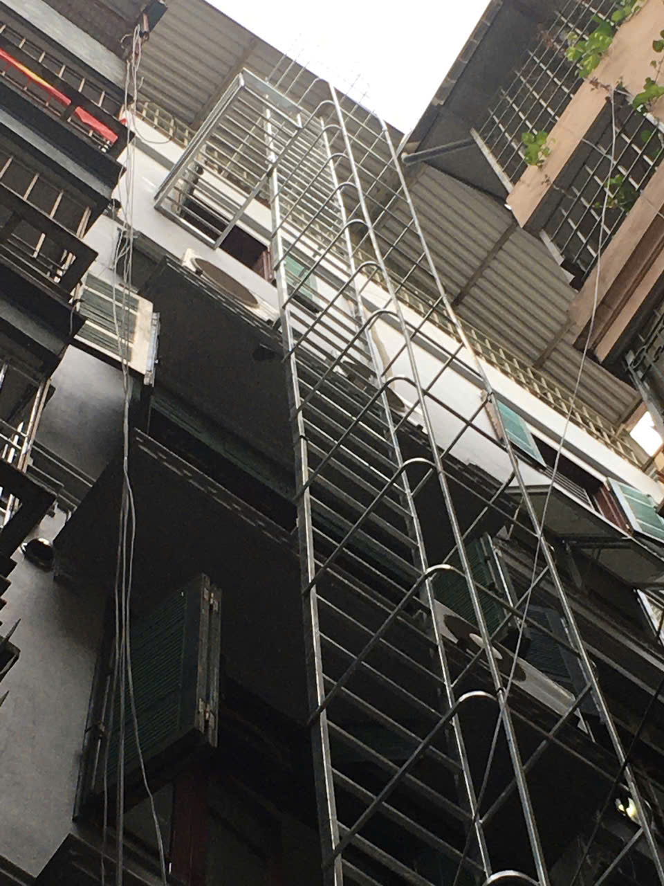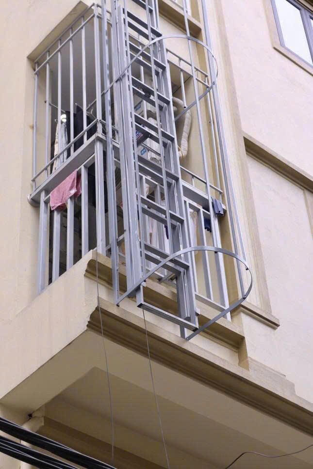 Khung bảo vệ (cage) giúp người thoát hiểm không bị trượt ngã khi leo từ tầng cao xuống.